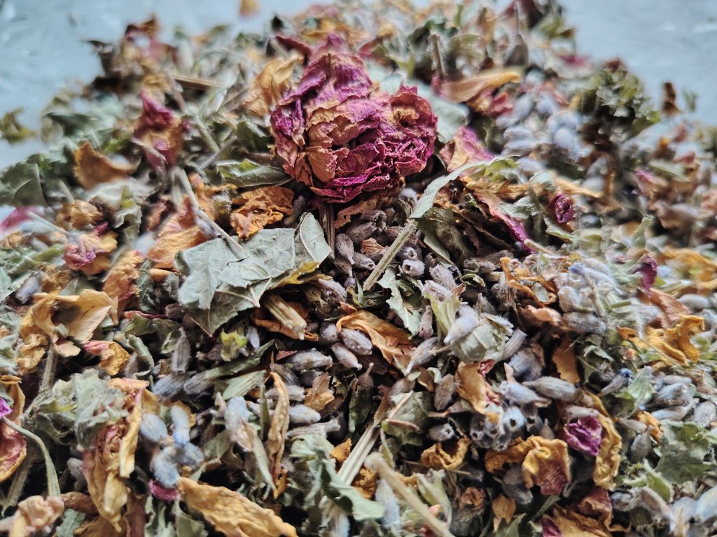 Състав: Лавандула (Lavandula angustifolia), Маточина (Melissa officinalis), Роза Цвят (Rosa damascena).