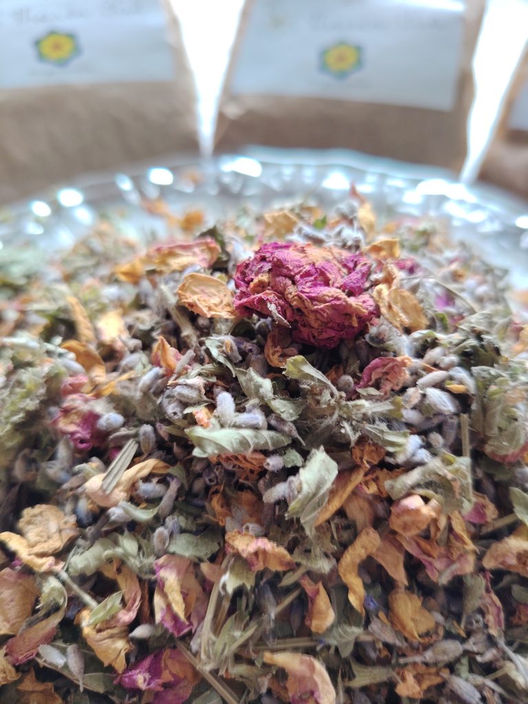 Представяме Ви нашите билкови чайове, подбрани с много любов и грижа. Всяка година екипът ни и доброволци събираме билки от нашите градини и от подходящи места в природата, както и си партнираме с хора, които отглеждат или събират билки с любов, грижа и отношение. Тези лечебни растения имат прекрасни общоукрепващи и лечебни свойства и качества. След това, на доброволни седянки с екипа, приятели и съмишленици, които подкрепят каузите ни, ние подготвяме и опаковаме тези билки в пакетчета, които да могат да достигнат екологично с минимален отпечатък до Вас. В момента разполагаме с 9 вида билкови смеси, както и самостоятелни билки, описани по-долу. Разпространяваме ги на дарение или взаимообмен като имаме препоръчителни минимални дарение за Ваше улеснение. Средствата или нещо друго, които ни дарите отиват за каузите на Проект “Пчелен Рай”, както и за дейностите на Сдружението (информация в края на страницата).