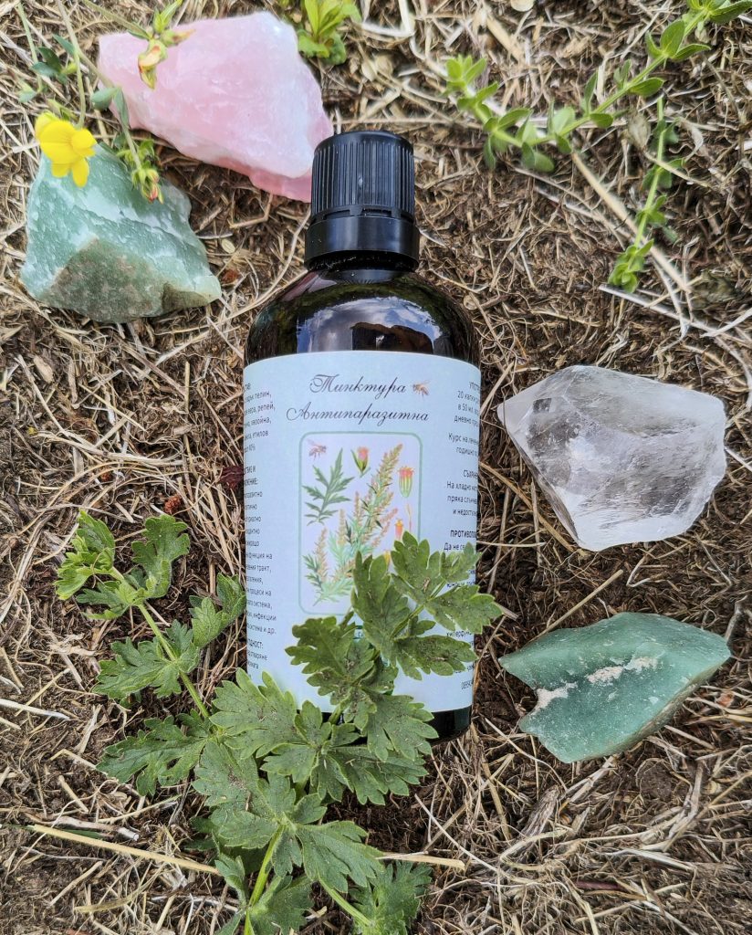 Състав: Зелен орех, Сладък пелин, Карамфил, Алое вера, Репей, Троскот, Трънка, Хвойна, Вратига, Канела, Етилов алкохол 40%